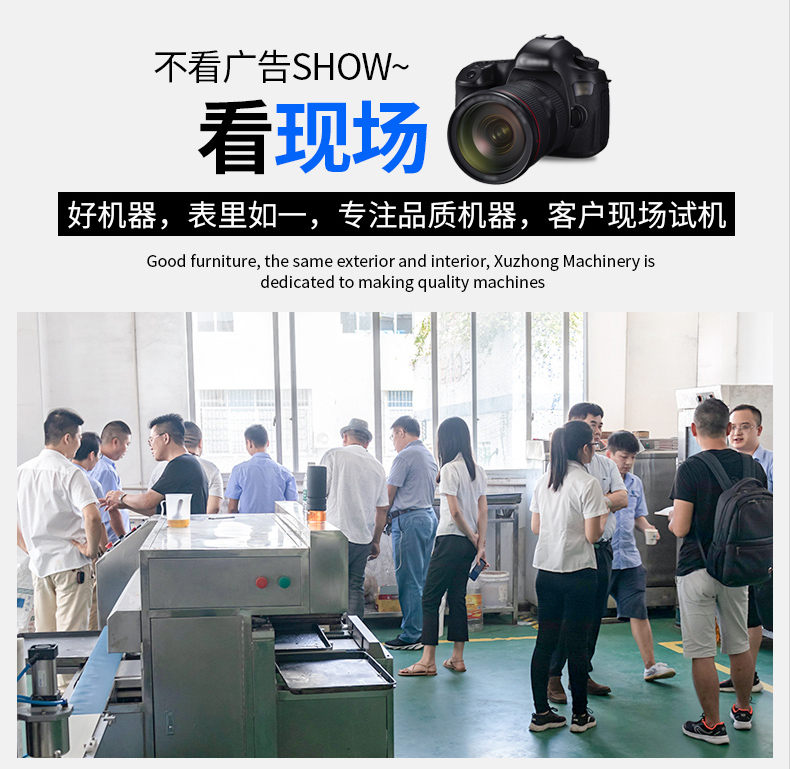 廣州旭眾食品機(jī)械有限公司是一家集科研開發(fā),生產(chǎn)設(shè)計,營銷服務(wù)為一體的現(xiàn)代化生產(chǎn)企業(yè)。現(xiàn)代化生產(chǎn)車間,精湛制造技術(shù),所產(chǎn)機(jī)械歷經(jīng)市場重重考驗,不斷贏得海內(nèi)外客戶的贊譽(yù)。