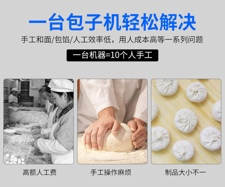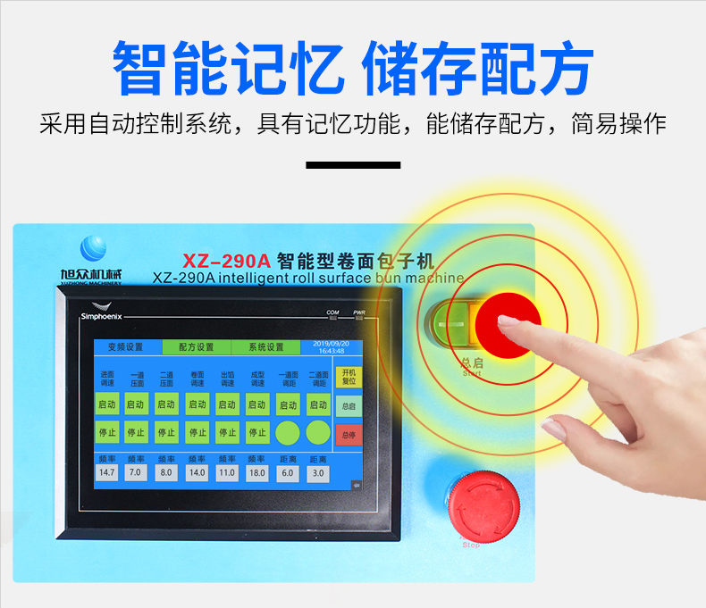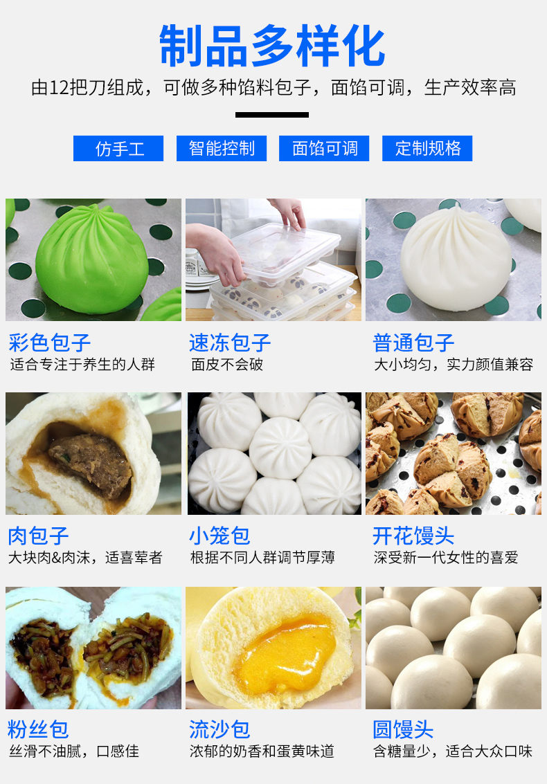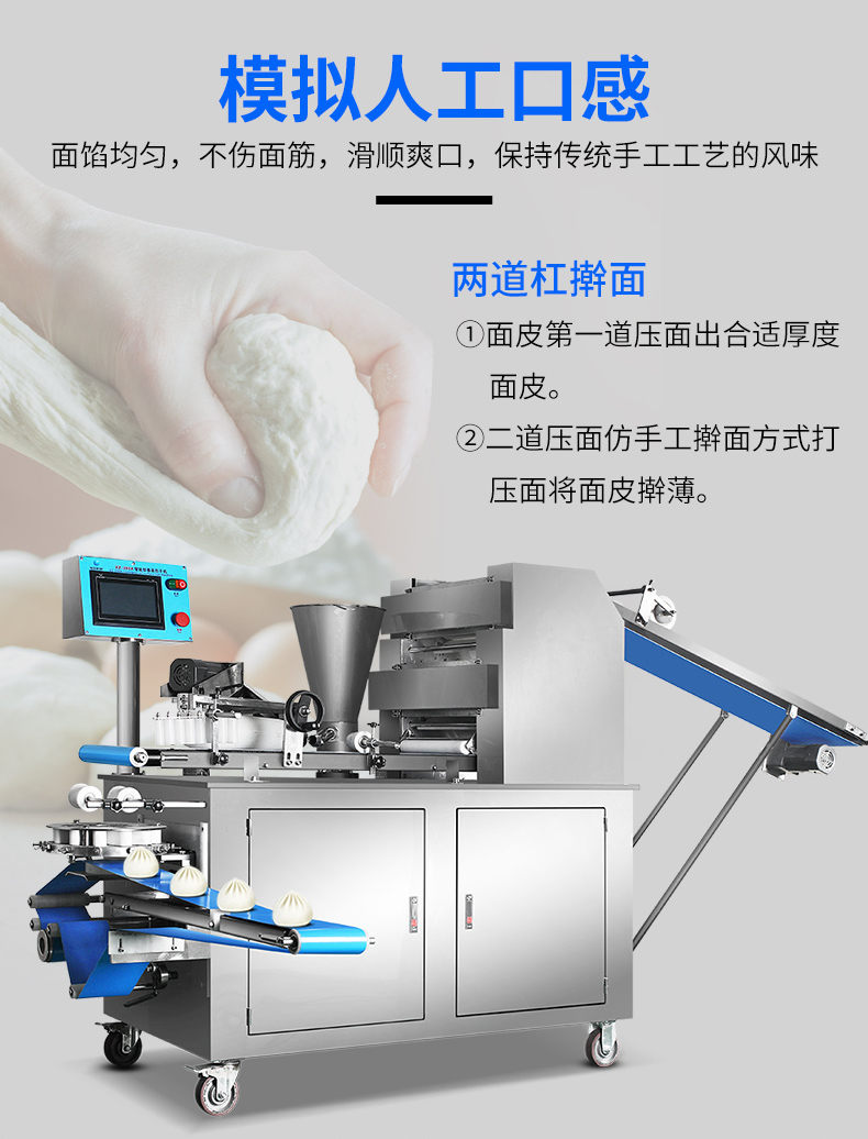 XZ-290A智能型卷面包子機(jī),仿手工智能包子機(jī)。操作簡單、精準(zhǔn)控制、快速成型、模擬人工。好機(jī)器,表里如一,專注品質(zhì)機(jī)器,客戶現(xiàn)場試機(jī)。一臺包子機(jī)輕松解決手工和面/包餡/人工效率低,用人成本高等一系列問題。