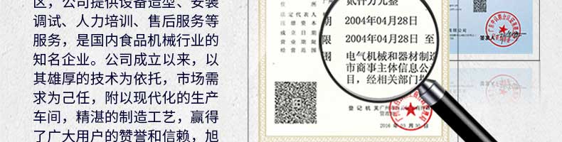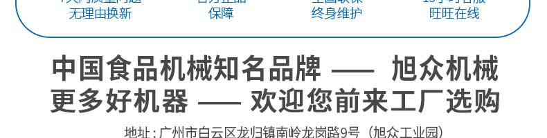 廣州旭眾食品機(jī)械有限公司是一家集科研開(kāi)發(fā),生產(chǎn)設(shè)計(jì),營(yíng)銷(xiāo)服務(wù)為一體的現(xiàn)代化生產(chǎn)企業(yè)?,F(xiàn)代化生產(chǎn)車(chē)間,精湛制造技術(shù),所產(chǎn)機(jī)械歷經(jīng)市場(chǎng)重重考驗(yàn),不斷贏得海內(nèi)外客戶(hù)的贊譽(yù)。