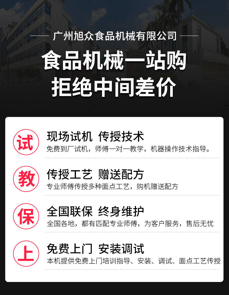 廣州旭眾食品機(jī)械有限公司是一家集科研開(kāi)發(fā),生產(chǎn)設(shè)計(jì),營(yíng)銷服務(wù)為一體的現(xiàn)代化生產(chǎn)企業(yè)。現(xiàn)代化生產(chǎn)車間,精湛制造技術(shù),所產(chǎn)機(jī)械歷經(jīng)市場(chǎng)重重考驗(yàn),不斷贏得海內(nèi)外客戶的贊譽(yù)。