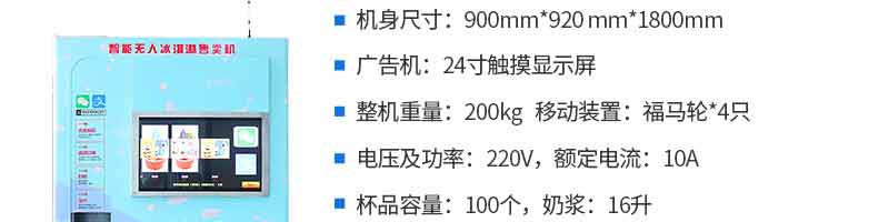 無人售貨冰淇淋機, 人工成本越來越高,無人店、無人售賣機必將是一個趨勢。簡單而又重復(fù)的勞動(售賣)必將被智能無人替代。無人售貨自助冰淇淋機支持多種支付方式,支持遠程監(jiān)管功能,支持預(yù)冷保鮮,支持多種口味混合,自動清洗少料報警。無需人工、場地?zé)o限制。