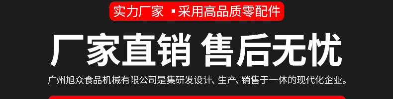 廣州旭眾食品機(jī)械有限公司是一家集科研開(kāi)發(fā),生產(chǎn)設(shè)計(jì),營(yíng)銷服務(wù)為一體的現(xiàn)代化生產(chǎn)企業(yè)?,F(xiàn)代化生產(chǎn)車間,精湛制造技術(shù),所產(chǎn)機(jī)械歷經(jīng)市場(chǎng)重重考驗(yàn),不斷贏得海內(nèi)外客戶的贊譽(yù)。