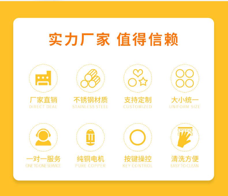廣州旭眾食品機(jī)械有限公司是一家集科研開發(fā),生產(chǎn)設(shè)計,營銷服務(wù)為一體的現(xiàn)代化生產(chǎn)企業(yè)。現(xiàn)代化生產(chǎn)車間,精湛制造技術(shù),所產(chǎn)機(jī)械歷經(jīng)市場重重考驗(yàn),不斷贏得海內(nèi)外客戶的贊譽(yù)。