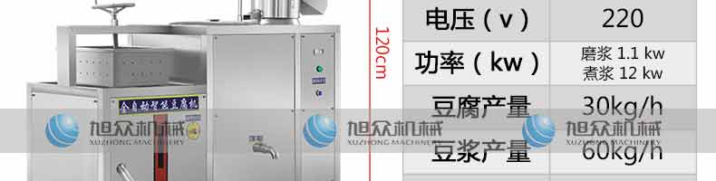 XZ-60智能豆腐機,一機多用:可生產(chǎn)豆腐系列產(chǎn)品:單色(嫩,老)豆腐、多彩豆 腐、單色豆腐皮、多色豆腐皮、彩色豆腐干、豆?jié){、豆花等豆制品制作,還可以與其他設備和工藝配套生 產(chǎn)更多的豆制品。