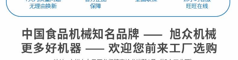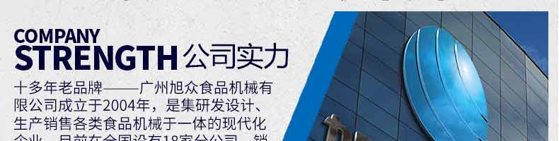 廣州旭眾食品機械有限公司是一家集科研開發(fā),生產(chǎn)設計,營銷服務為一體的現(xiàn)代化生產(chǎn)企業(yè)。現(xiàn)代化生產(chǎn)車間,精湛制造技術,所產(chǎn)機械歷經(jīng)市場重重考驗,不斷贏得海內外客戶的贊譽。