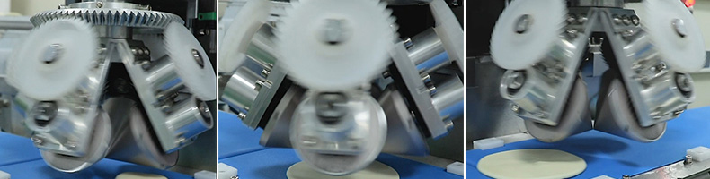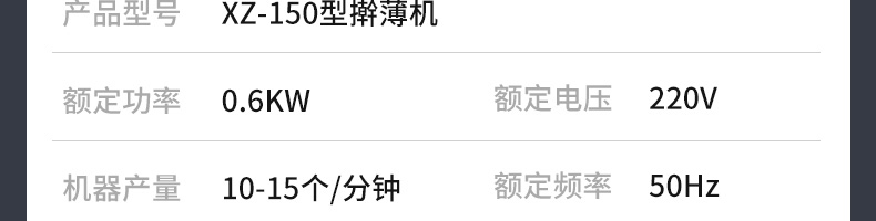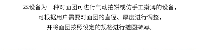 XZ-150型搟薄機(jī),為一種對面團(tuán)可進(jìn)行氣動拍餅或仿手工搟薄的設(shè)備,可根據(jù)用戶需要對面團(tuán)的直徑、厚度進(jìn)行調(diào)整并將面團(tuán)按照設(shè)定的規(guī)格進(jìn)行搓圓摔搟薄。