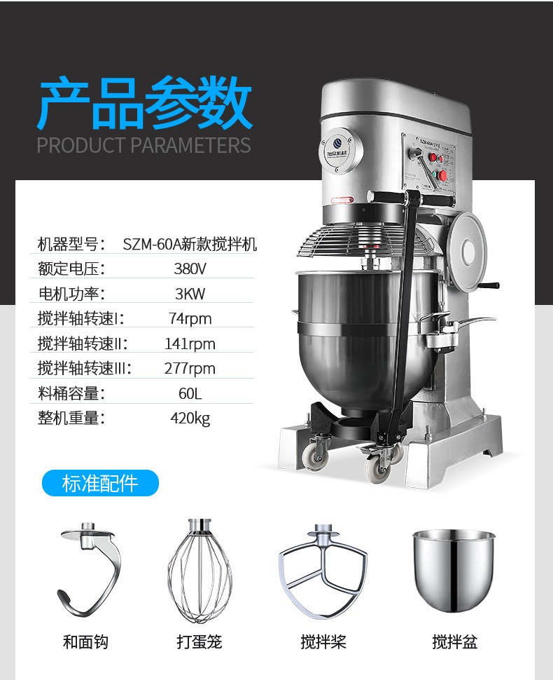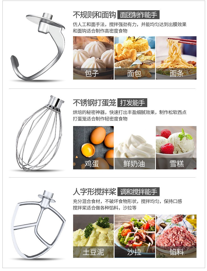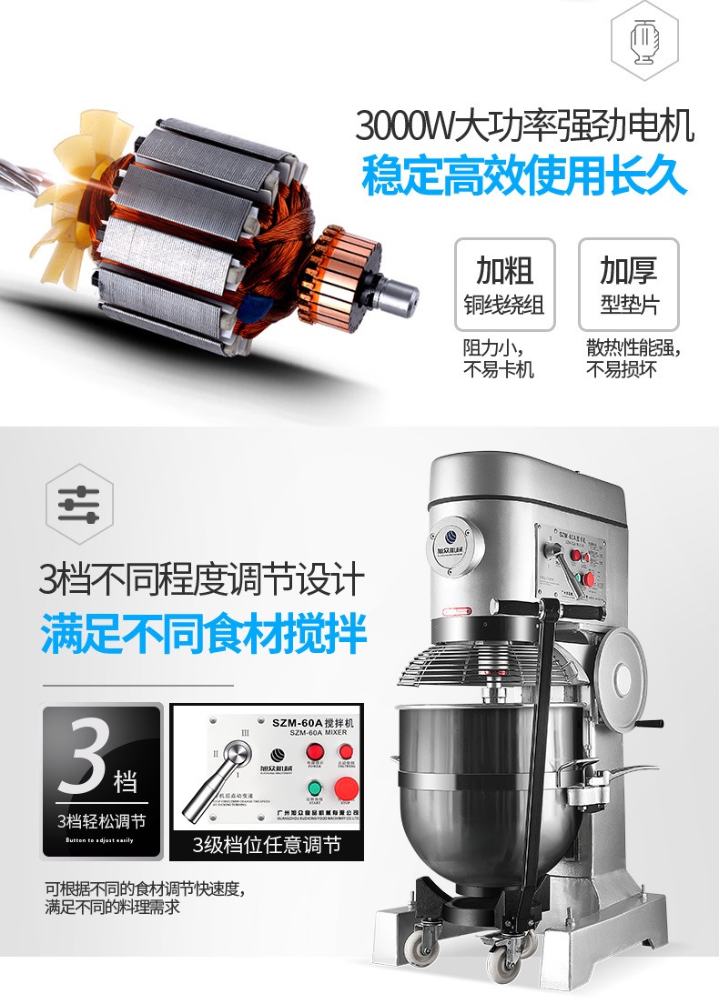 多功能攪拌和面機(jī),創(chuàng)業(yè)神器,開(kāi)創(chuàng)廚房新時(shí)代。多功能高效率,讓您省心省力又省事。360行星軌跡攪打系統(tǒng),攪拌均勻保持口感。3000W大功率強(qiáng)勁電機(jī),穩(wěn)定高效使用長(zhǎng)久。