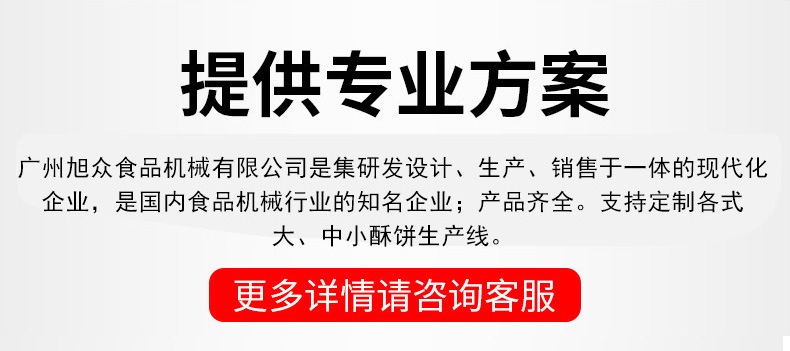 廣州旭眾食品機(jī)械有限公司是一家集科研開發(fā),生產(chǎn)設(shè)計(jì),營銷服務(wù)為一體的現(xiàn)代化生產(chǎn)企業(yè)?,F(xiàn)代化生產(chǎn)車間,精湛制造技術(shù),所產(chǎn)機(jī)械歷經(jīng)市場重重考驗(yàn),不斷贏得海內(nèi)外客戶的贊譽(yù)。