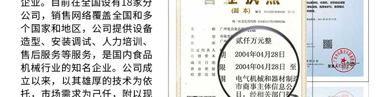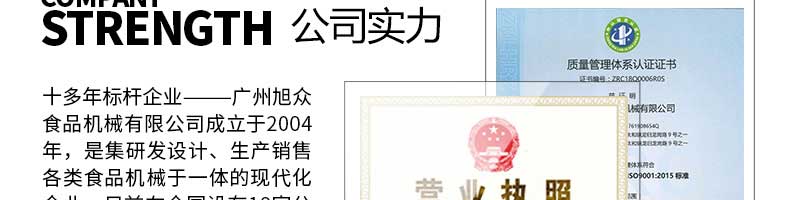 廣州旭眾食品機械有限公司是一家集科研開發(fā),生產(chǎn)設計,營銷服務為一體的現(xiàn)代化生產(chǎn)企業(yè)?,F(xiàn)代化生產(chǎn)車間,精湛制造技術(shù),所產(chǎn)機械歷經(jīng)市場重重考驗,不斷贏得海內(nèi)外客戶的贊譽。
