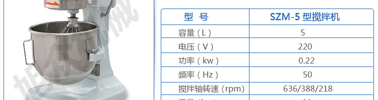 SZM-5型攪拌機,可用于攪拌奶油、蛋糕液、餡料及和制面團(tuán)等操作。打蛋攪拌機等作攪拌食料、揉和面團(tuán)之用,是生產(chǎn)優(yōu)質(zhì)糕點的理想設(shè)備,適用于酒店、飯店、學(xué)校部門、面包屋以及食品廠家。