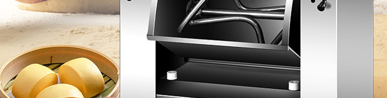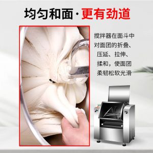 低噪音和面機,利用攪拌器的轉(zhuǎn)動,使面粉和水在面斗中形成小顆粒,粘黏形成大面團(tuán)塊。大容量翻轉(zhuǎn)面斗,采用優(yōu)質(zhì)不銹鋼焊接制造,防腐蝕,食品接觸安全,符合食品生產(chǎn)安全標(biāo)準(zhǔn)。