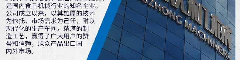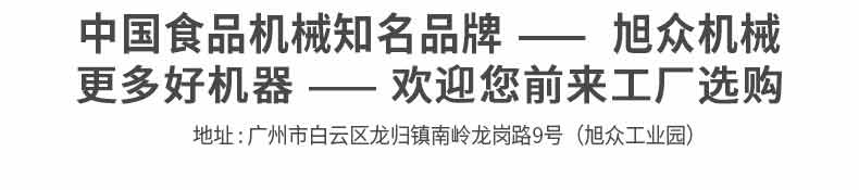 廣州旭眾食品機械有限公司是一家集科研開發(fā),生產設計,營銷服務為一體的現(xiàn)代化生產企業(yè)?,F(xiàn)代化生產車間,精湛制造技術,所產機械歷經市場重重考驗,不斷贏得海內外客戶的贊譽。