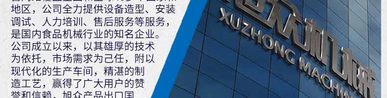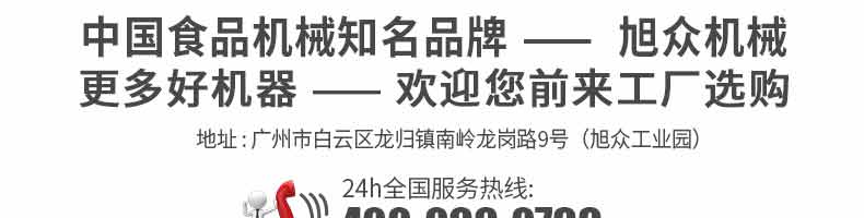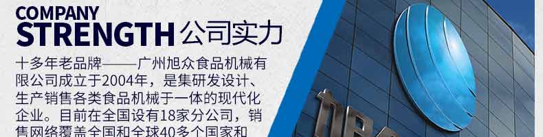 廣州旭眾食品機(jī)械有限公司是一家集科研開發(fā),生產(chǎn)設(shè)計(jì),營銷服務(wù)為一體的現(xiàn)代化生產(chǎn)企業(yè)?,F(xiàn)代化生產(chǎn)車間,精湛制造技術(shù),所產(chǎn)機(jī)械歷經(jīng)市場重重考驗(yàn),不斷贏得海內(nèi)外客戶的贊譽(yù)。