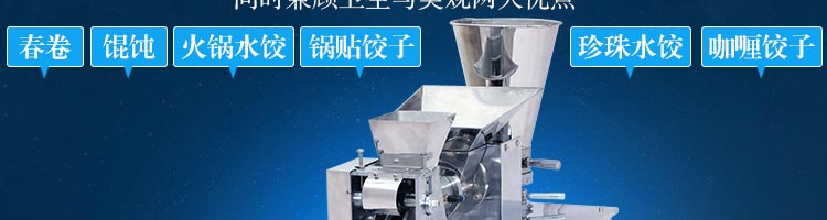 JGB-120-5B型餃子機,本機是一款可生產(chǎn)各種肉餡、肉菜混合餡、全菜餡及其他種餡餃子的設(shè)備。一機多用途,只要更換模具,就可制作不同的食品,如春卷、餛飩、咖喱角、鍋貼等。適用于賓館、飯店、餐廳、團體食堂加工,幼兒園、速凍餃子生產(chǎn)。