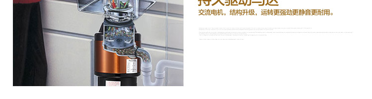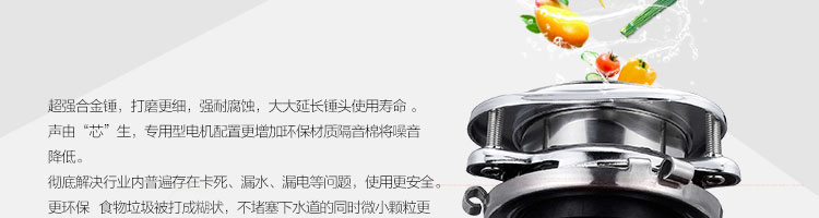 ACLQ37-廚房垃圾處理器,采用先進的研磨系統(tǒng),采用特殊合金錘粉技術,能根據(jù)垃圾的強度,自動調節(jié)工作位置,處理垃圾的范圍和細度優(yōu)良。能夠有效地將食物垃圾研磨成細小顆粒,直接從下水管道排出,從而實現(xiàn)及時方便快捷的廚房清潔,滿足現(xiàn)代健康家居的要求。