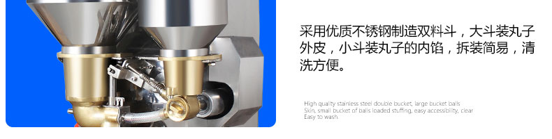 SZ-602包心肉丸機(jī),可生產(chǎn)包心魚丸、包心豬肉丸、撒尿牛肉丸、爆汁小魚丸等多種球形醬湯類包餡產(chǎn)品。操控性強(qiáng)、穩(wěn)定性高、出品率穩(wěn)定;可抽皮增餡,做到皮薄餡多。