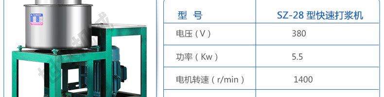 名稱SZ-28型高速肉丸打漿機(jī) 電源380V 功率5.5KW 產(chǎn)量10kg/次 尺寸760*400*850mm 重量130KG 規(guī)格 其他