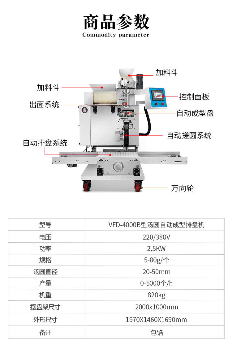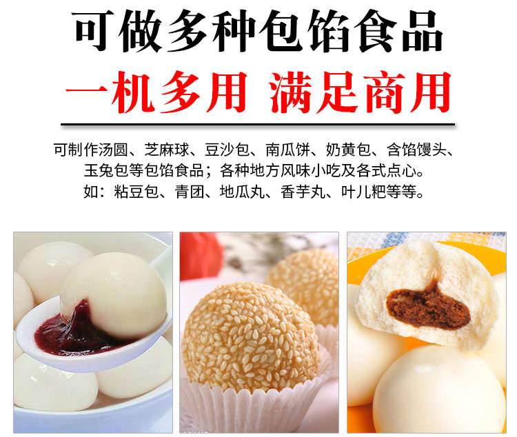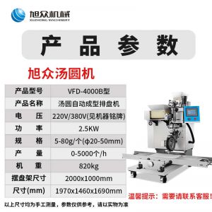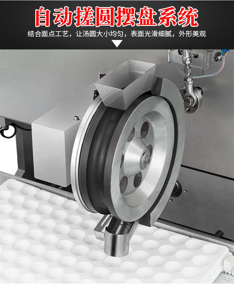 VFD-4000B湯圓機(jī),定量準(zhǔn)確自動搓圓排盤成型大小均勻口感柔滑。可制作各式包餡食品,如湯圓、芝麻球、豆沙包、南瓜餅、奶黃包等