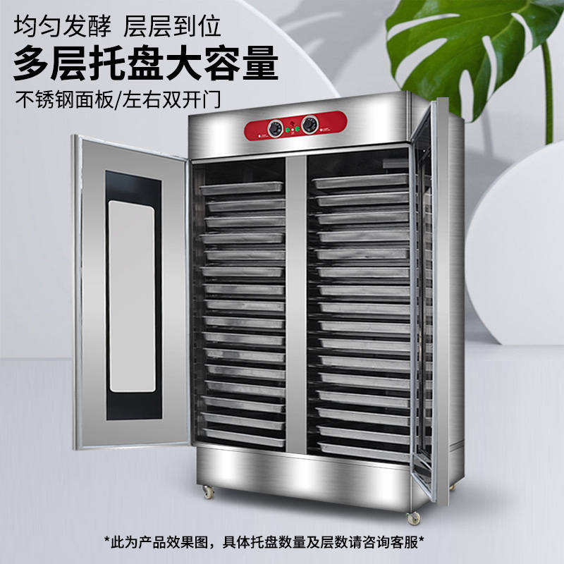 VF系列醒發(fā)箱,熱風(fēng)循環(huán)、恒溫發(fā)酵。熱氣均勻分布,多盤(pán)發(fā)酵制作美味一樣到底。恒溫醒發(fā)箱完美解決利用電熱管,通過(guò)電子溫度控制電路,密封保濕循環(huán)發(fā)熱使箱內(nèi)產(chǎn)生相對(duì)濕度為80-85%