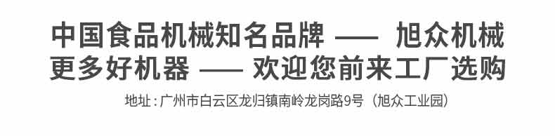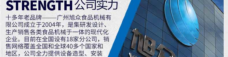 廣州旭眾食品機械有限公司是一家集科研開發(fā),生產(chǎn)設計,營銷服務為一體的現(xiàn)代化生產(chǎn)企業(yè)。現(xiàn)代化生產(chǎn)車間,精湛制造技術,所產(chǎn)機械歷經(jīng)市場重重考驗,不斷贏得海內外客戶的贊譽。