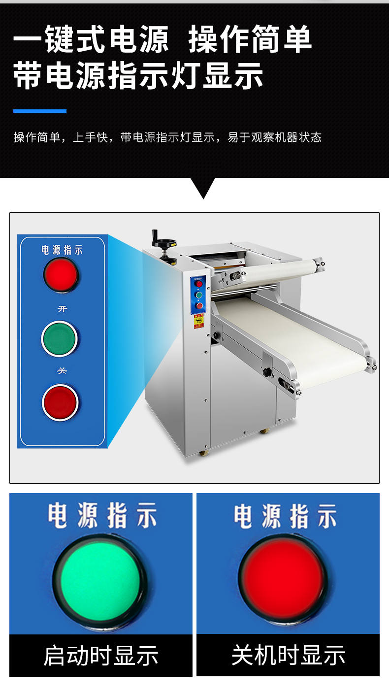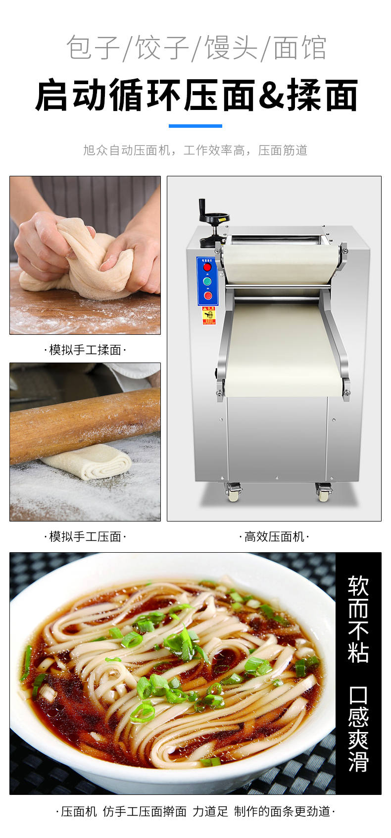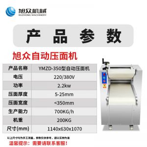 YMZD-350自動(dòng)壓面機(jī),自動(dòng)循環(huán)、厚薄可調(diào)。包子、餃子、饅頭,面館等場(chǎng)所適用。啟動(dòng)循環(huán)壓面、揉面。全自動(dòng)仿人工揉面,壓面自動(dòng)輸送、揉、壓、折疊。