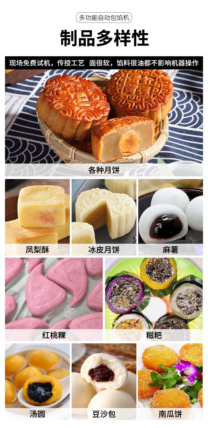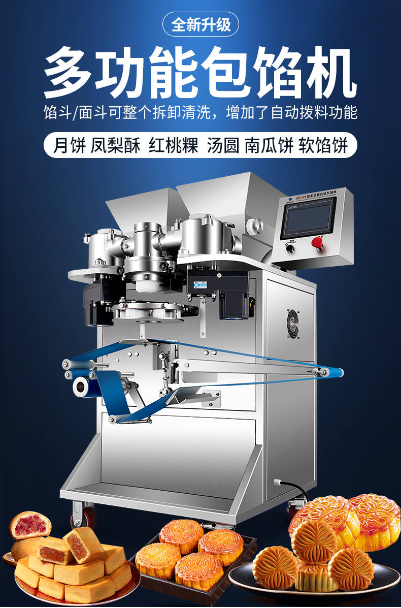 SZ-69型多功能自動包餡機,餡斗/面斗,可整個拆卸清洗,增加了自動拔料功能。月餅鳳梨酥紅桃裸湯圓南瓜餅軟餡餅。在嚴把質(zhì)量關(guān)的同時,產(chǎn)品的關(guān)鍵部件都選自國內(nèi)優(yōu)秀企業(yè)。只有不斷的提高產(chǎn)品的質(zhì)量,才能使客戶從中獲益,而客戶的成功最終也就是我們的成功。