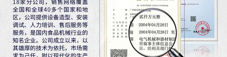 廣州旭眾食品機(jī)械有限公司是一家集科研開(kāi)發(fā),生產(chǎn)設(shè)計(jì),營(yíng)銷服務(wù)為一體的現(xiàn)代化生產(chǎn)企業(yè)?,F(xiàn)代化生產(chǎn)車間,精湛制造技術(shù),所產(chǎn)機(jī)械歷經(jīng)市場(chǎng)重重考驗(yàn),不斷贏得海內(nèi)外客戶的贊譽(yù)。