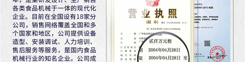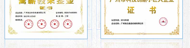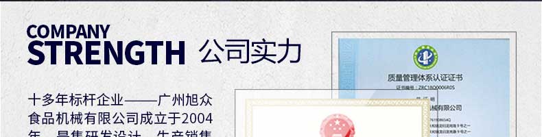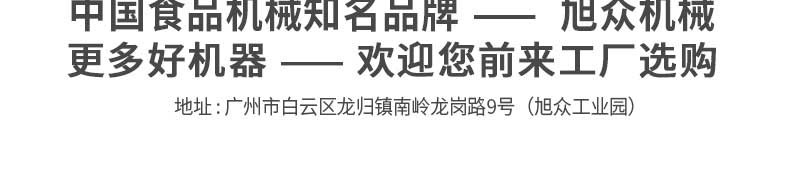 廣州旭眾食品機(jī)械有限公司是一家集科研開發(fā),生產(chǎn)設(shè)計(jì),營銷服務(wù)為一體的現(xiàn)代化生產(chǎn)企業(yè)?,F(xiàn)代化生產(chǎn)車間,精湛制造技術(shù),所產(chǎn)機(jī)械歷經(jīng)市場重重考驗(yàn),不斷贏得海內(nèi)外客戶的贊譽(yù)。